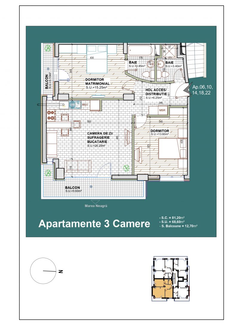 Apartamente de vanzare Mamaia - 3 camere tip 1